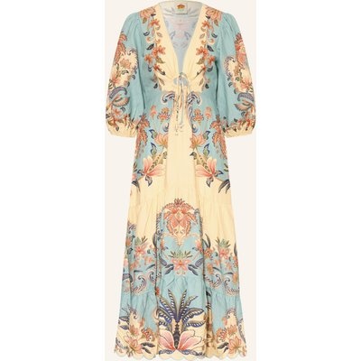 Farm Rio Leinenkleid Mit Lochspitze blau