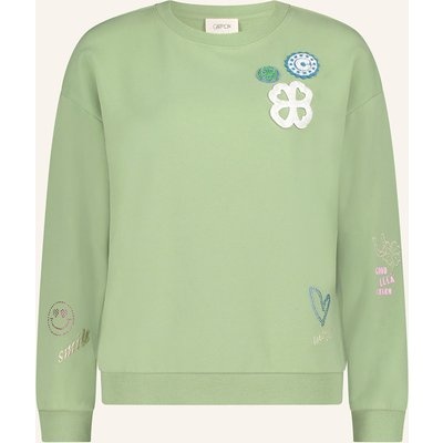 Cartoon Sweatshirt Mit Schmucksteinen gruen