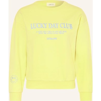 Cartoon Sweatshirt Mit Schmucksteinen gelb