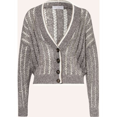 Brunello Cucinelli Strickjacke Aus Leinen Mit Pailletten grau