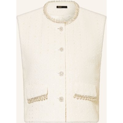 Maje Blazerweste Aus Tweed Mit Schmucksteinen weiss