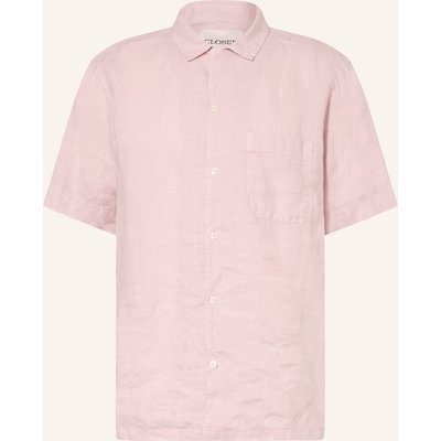 Closed Kurzarm-Hemd Comfort Fit Aus Leinen rosa