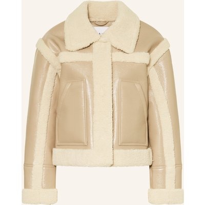 Mrs & Hugs Jacke In Lederoptik Mit Kunstfell beige