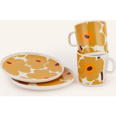 Marimekko 4-Tlg. Set Oiva/ Unikko: Henkelbecher Und Dessertteller orange