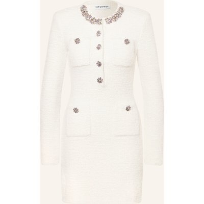Self-Portrait Tweed-Kleid Mit Schmucksteinen weiss