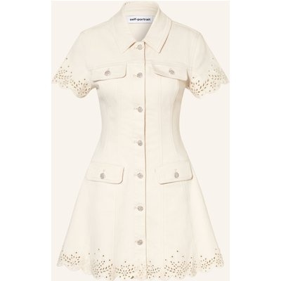 Self-Portrait Jeanskleid Mit Lochspitze Und Schmucksteinen beige