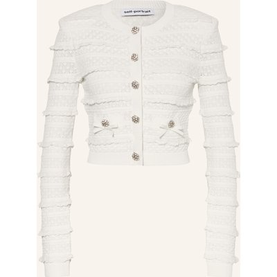 Self-Portrait Cropped-Strickjacke Mit Schmucksteinen Und Rüschen weiss