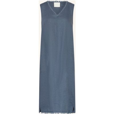 Oui Kleid Im Materialmix Mit Leinen blau