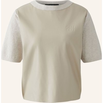 Oui Strickshirt Im Materialmix Mit Lederoptik beige