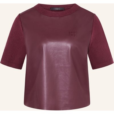 Oui Strickshirt Im Materialmix Mit Lederoptik rot