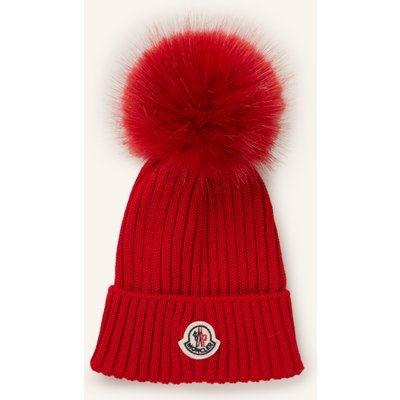 Moncler Enfant Mütze Mit Kunstpelzbommel rot