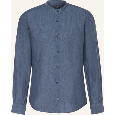 Olymp Leinenhemd Casual Regular Fit Mit Stehkragen blau