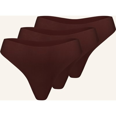 Erlich Textil 3er Pack Casual Cotton High Waist Brazil String Aus Bio-Baumwolle - Nahtlose Kanten braun