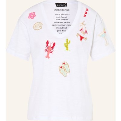 Grace T-Shirt Mit Schmuckperlen weiss