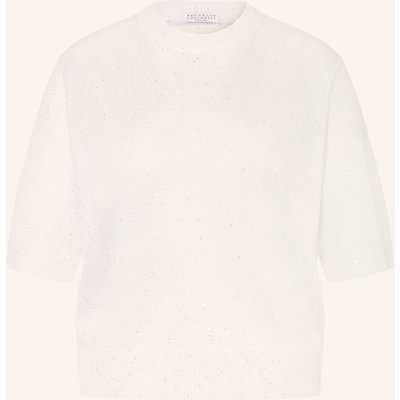 Brunello Cucinelli Strickshirt Aus Leinen Mit Pailletten weiss