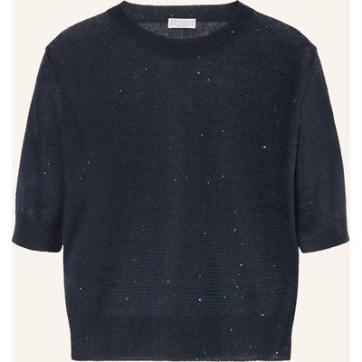 Brunello Cucinelli Strickshirt Aus Leinen Mit Pailletten blau