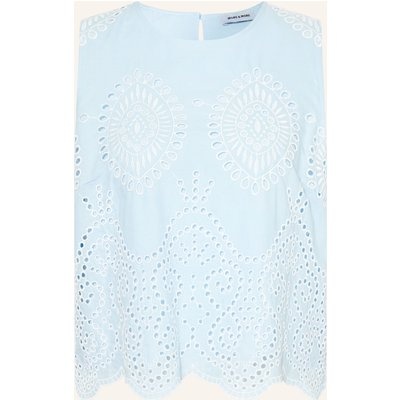 More & More Blusentop Aus Lochspitze blau