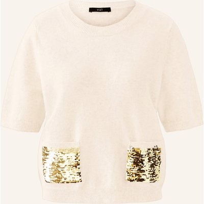 Oui Strickshirt Mit Pailletten weiss