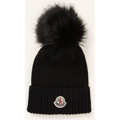 Moncler Enfant Mütze Mit Kunstpelzbommel schwarz
