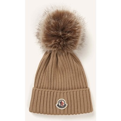 Moncler Enfant Mütze Mit Kunstpelz-Bommel beige