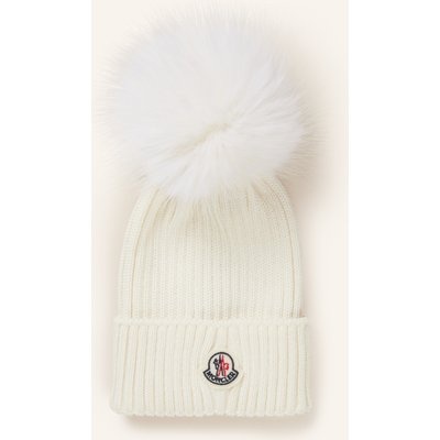 Moncler Enfant Mütze Mit Kunstpelzbommel weiss