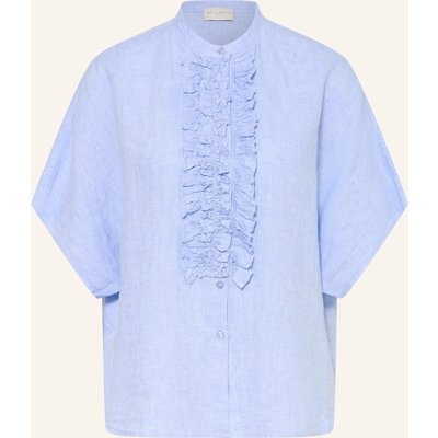 Milano Italy Leinenbluse Mit Rüschen blau