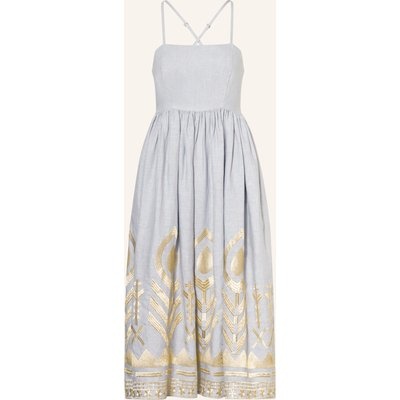 Greek Archaic Kori Strandkleid Feather Aus Leinen Mit Glitzergarn grau