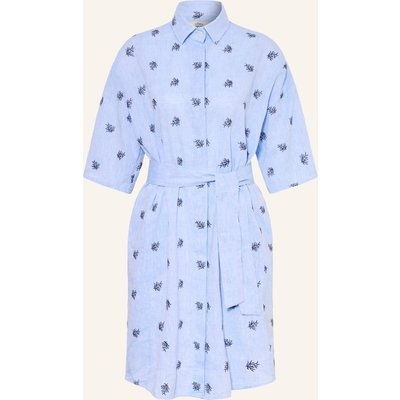 0039 Italy Hemdblusenkleid Julene Mit Leinen blau