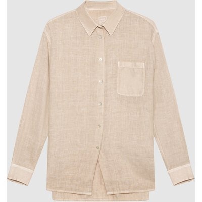 120%Lino Hemdblusenkleid Aus Leinen beige