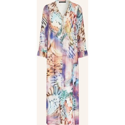 A-Linie. Rundhalsausschnitt. Geknöpfter Tropfenausschnitt hinten. Ärmellos. Gefütterte Verarbeitung. Allover-Muster. Schmucksteine am Ausschnitt. Elastische Mesh-Qualität. Fließende Verarbeitung