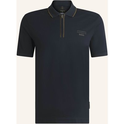 Boss Piqué-Poloshirt Passerzip blau