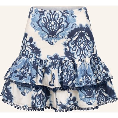 Minirock. Kurz. Floral. Bortenteil. Ohne Accessoires. Minirock. Kurz. Rockteil mit Rüschenbesatz. Ausgestellter Schnitt. Florales Muster
