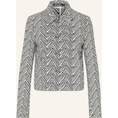 Gerader Schnitt. Umlegekragen. Schließt mit aufgesetzter Knopfleiste. Schmale Rückenpasse. Kurzer Schlitz an den Ärmelenden. Pattentaschen mit Knopf auf Brusthöhe. Ohne Innenfutter. Tweed. Besatz aus weicher Denim-Qualität. Mit Baumwolle