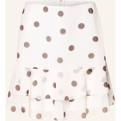 Ausgestellter Schnitt. Schließt mit nahtfeinem Reißverschluss in der hinteren Mitte. Volants am Saum. Gefütterte Verarbeitung. Punktemuster mit integriertem Label-Wording