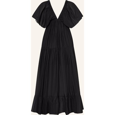 A-Linie. V-Ausschnitt. Tiefer Rückenausschnitt. Kurze Flügelärmel. Rockteil in Stufenoptik. Teilgefütterte Verarbeitung. Zarte Baumwollqualität