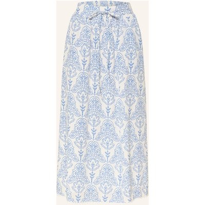 Leicht ausgestellter Schnitt. Stretchwaist mit Tunnelzug. Seitliche Eingrifftaschen. Spitzenbesatz am Saum. Gefütterte Verarbeitung. Florales Allover-Muster. Leichte Haptik. Reine Baumwolle
