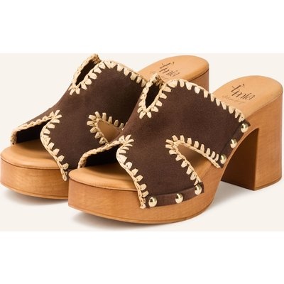 È Mia Plateau-Pantoletten Mit Nieten braun