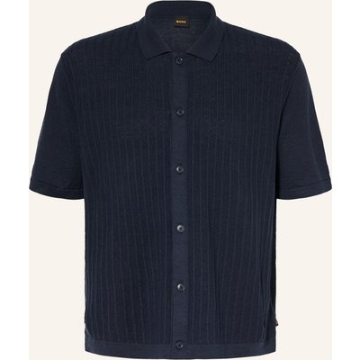 Boss Strickhemd Amicino Comfort Fit Mit Leinen blau
